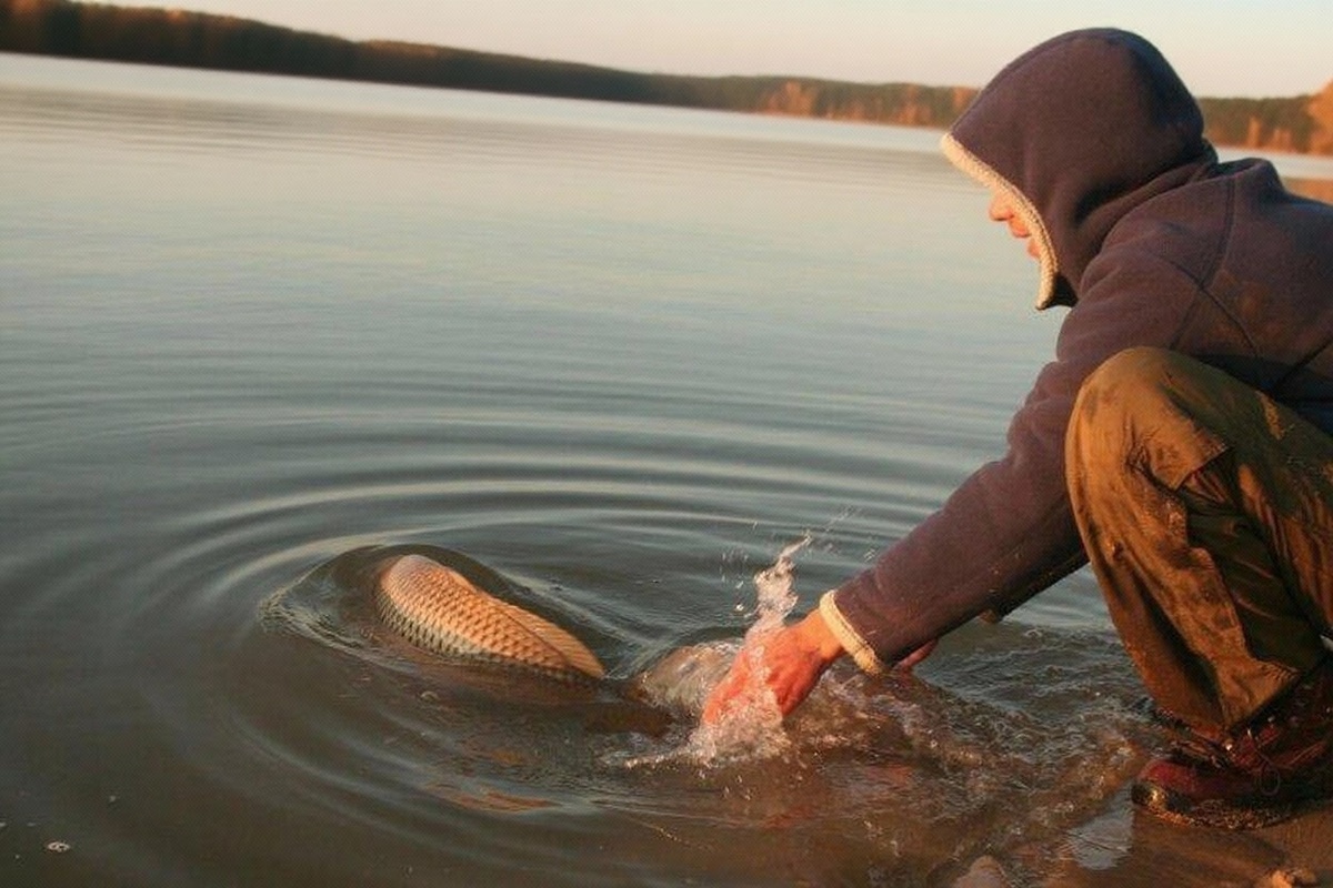 Смотрят за тем, чтобы отпустить рыбу не с высоты, ведь падение может травмировать её. Выбор подсаку и спуска к воде создают безопасное завершение рыбалки.