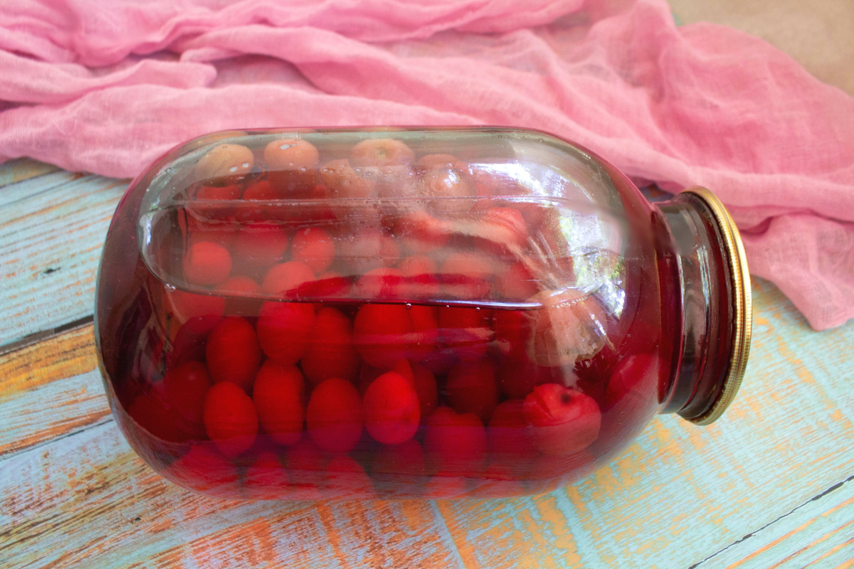 Вначале следует тщательно промыть вишню и черешню, освободив их от веточек и листьев. Затем ягоды следует аккуратно поместить в стеклянную банку.