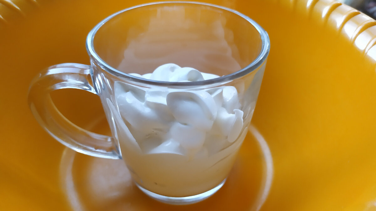 Сначала нужно взять сметану и аккуратно отмерить нужное количество. Без весов это не проблема — две столовые ложки вполне подойдут.