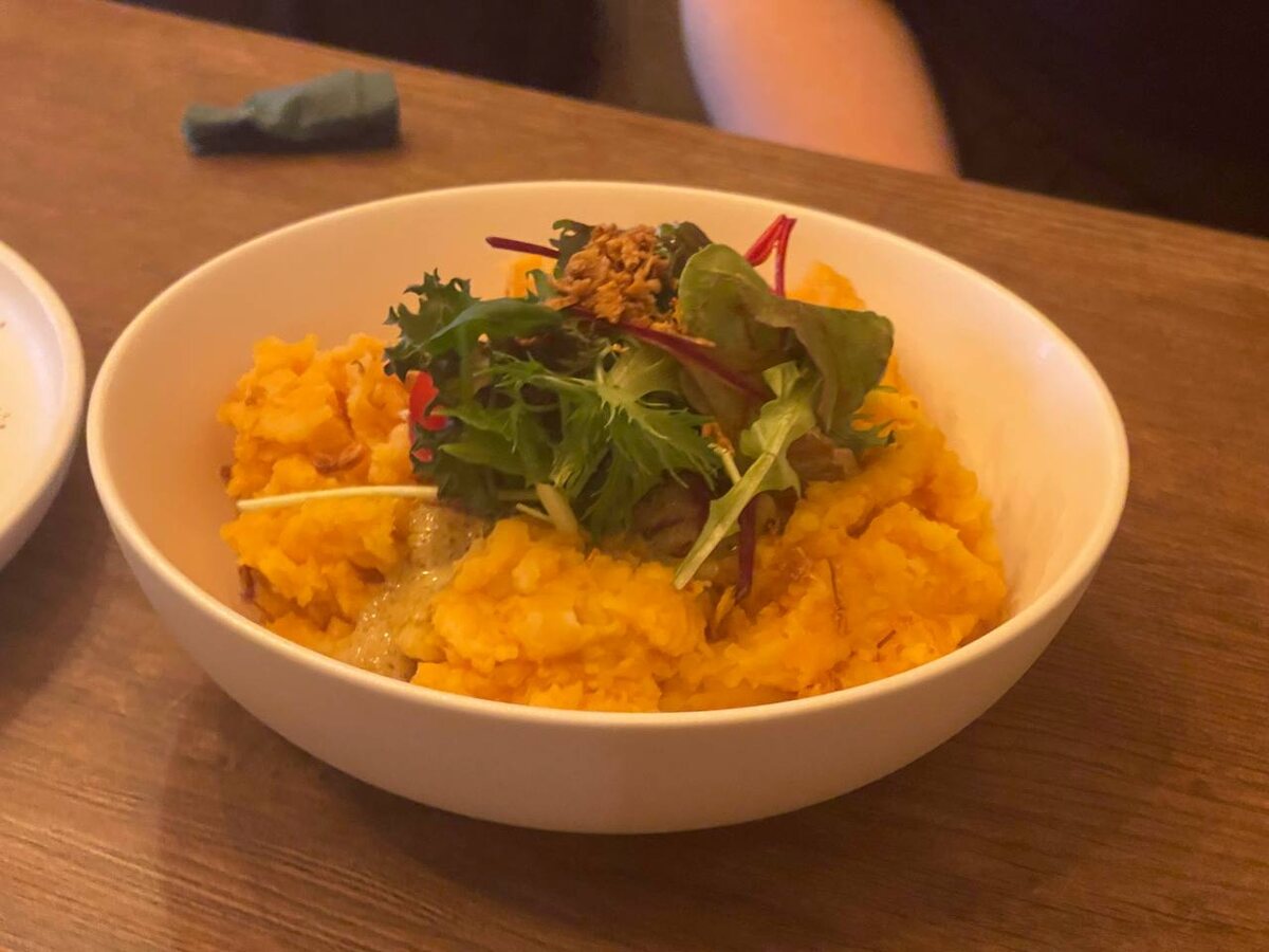 В центре внимания — невероятное пюре том ям с экзотическими добавками: ананасом, апельсином и нежной индейкой, щедро политое сливочным соусом карри. Это сочетание ярких вкусов и ароматов позволяет насладиться уникальным гастрономическим опытом.