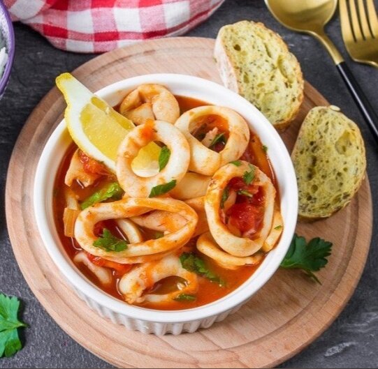 Это вкусное и ароматное блюдо с кальмарами не оставит равнодушным даже самых требовательных гурманов. Его легкость и яркость делают его идеальным вариантом для обеда или ужина.