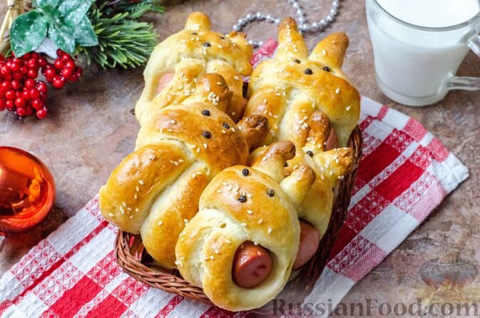 - Сосиски в тесте «Кролики» — оригинальное угощение, которое обязательно понравится как детям, так и взрослым. Дрожжевое тесто на молочной основе, легкое и пышное, идеально сочетается с сосисками.