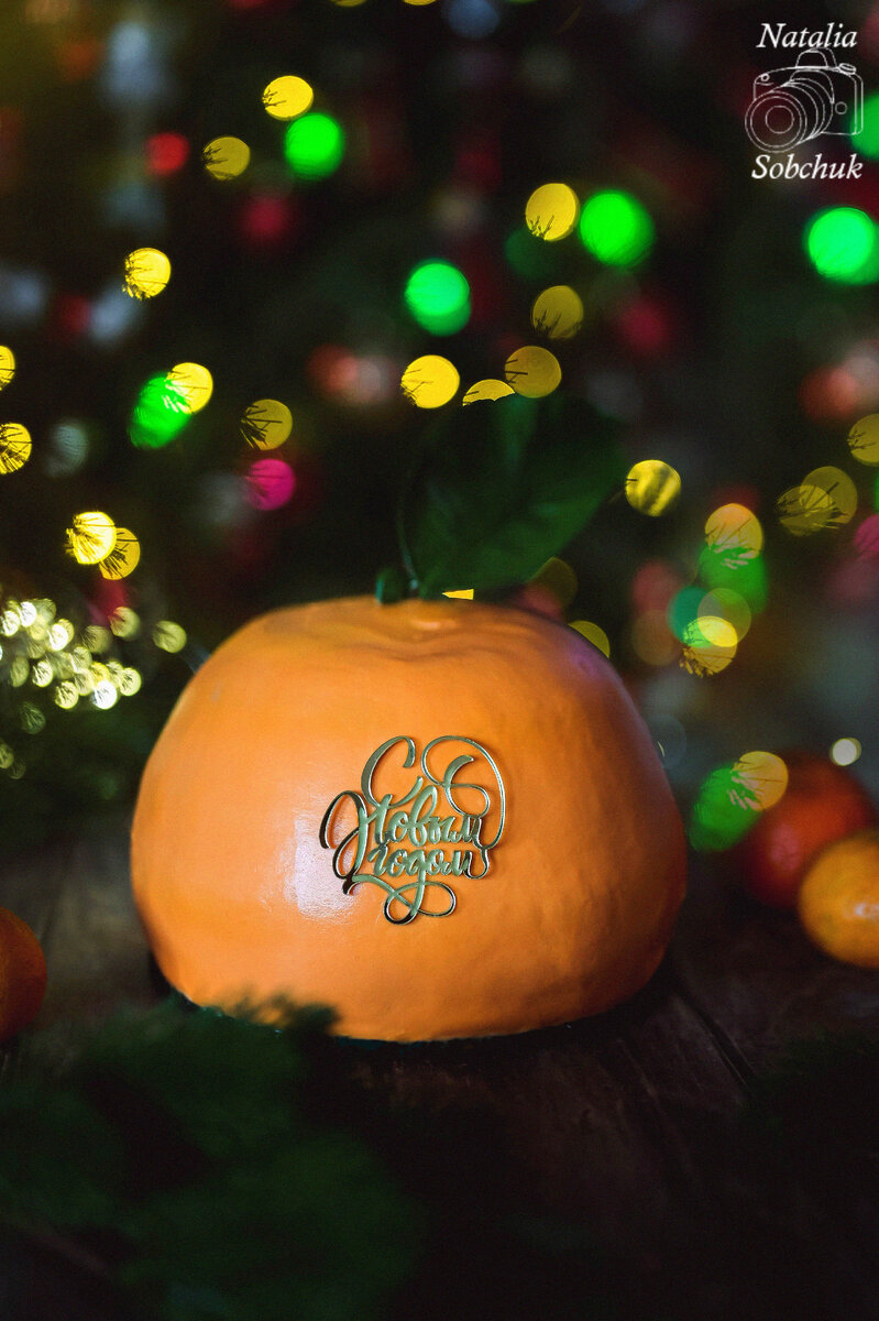 Внутри торта спрятаны воздушные ванильные бисквиты, пропитанные ароматной ванильной настойкой, а также нежный сливочно-творожный крем с яркими нотами мандаринов. Такой десерт обязательно станет звездой вашего праздничного стола.