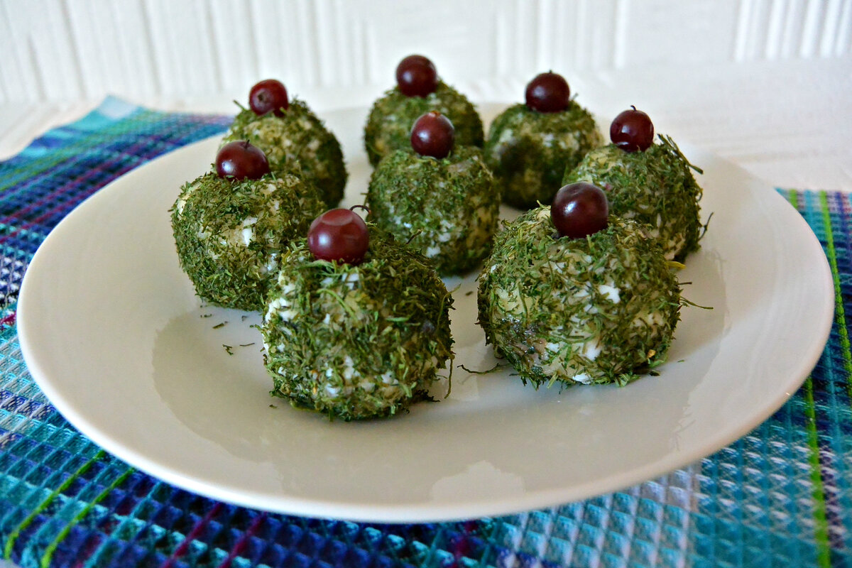 Затем все подготовленные ингредиенты следует объединить в одной глубокой миске, добавить немного майонеза для создания кремовой текстуры, и тщательно перемешать. Далее сформируйте небольшие шарики и обваляйте их в мелко нарезанном укропе для придания свежести и аромата. В качестве украшения используйте ягодки, которые добавят ярких акцентов и завершают оформление блюда.