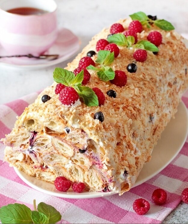 Торт-рулет из слоёного теста готов! Приятного аппетита!
