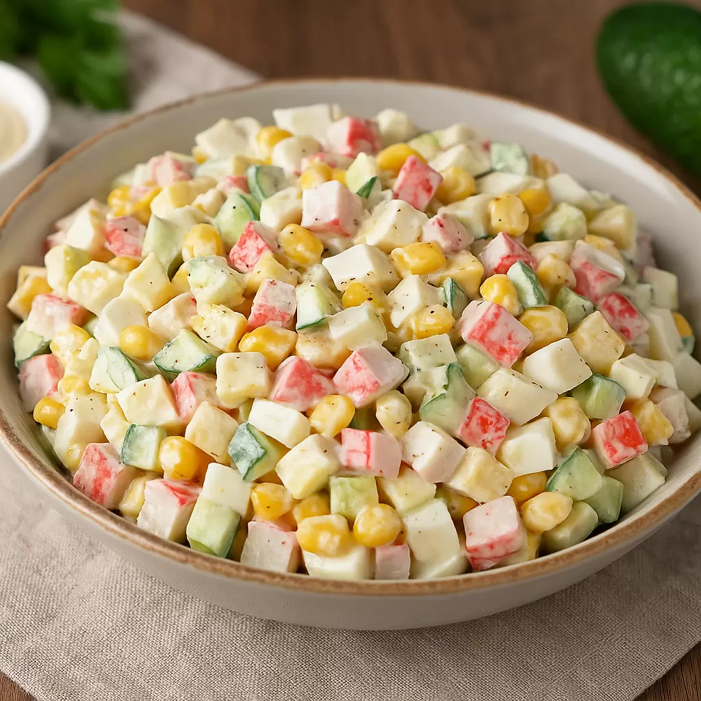 Среди множества любимых блюд, этот крабовый салат занимает особое место. Он призывает к воспоминаниям и ассоциациям с яркими праздниками и уютными встречами. Основное преимущество этого салата — его простота в приготовлении, яркость внешнего вида и неподражаемый вкус, знакомый многим с раннего детства.