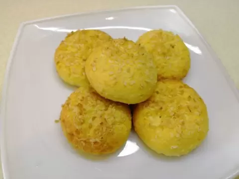 Для формирования печенья нужно взять небольшое количество теста, скатать его в шарик и немного приплюснуть. Каждое печенье можно посыпать сверху кокосовой стружкой — это придаст дополнительный аромат и текстуру.