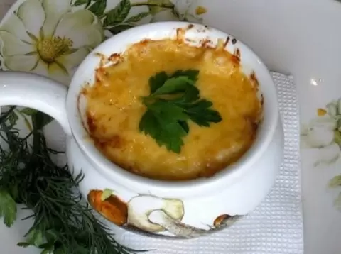 Запекается в разогретой до 200°C духовке на режиме "гриль" в течение 10-15 минут, пока сыр не подрумянится.