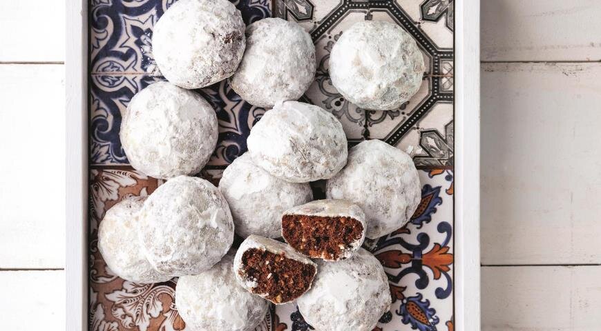 6. Насыпьте оставшуюся сахарную пудру в широкую миску. Готовое печенье оставьте на противнях на 10 минут, затем обмакните в сахарную пудру и переложите на решетку. Оставьте на 15 минут, после чего снова обмакните, дайте остыть.