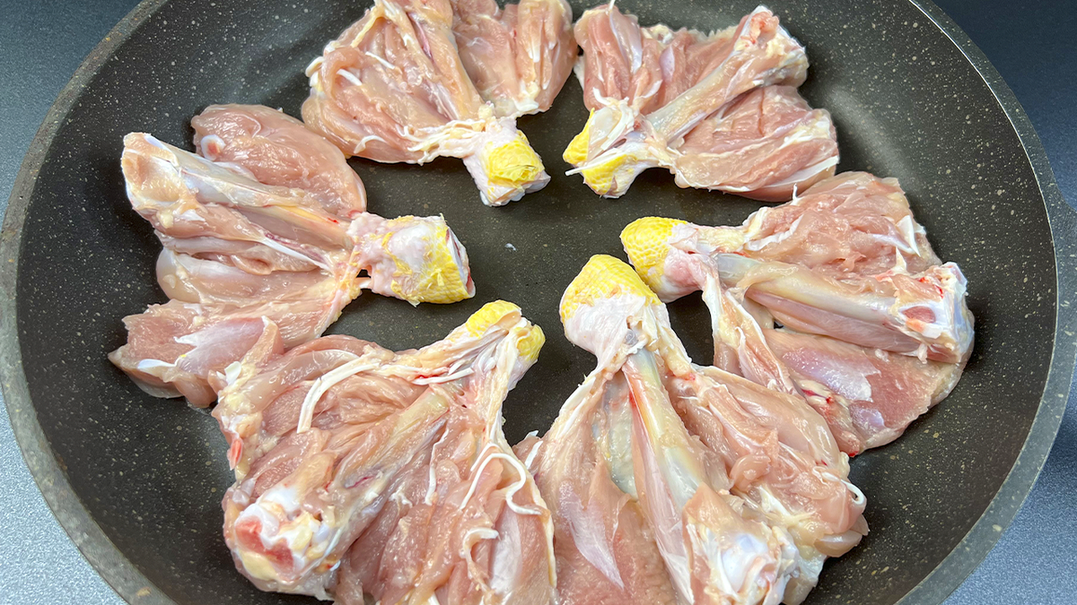 На разогретую сковороду с растительным маслом выкладываются голени. Их готовят на умеренном огне до получения золотистой корочки — примерно 15 минут, накрыв крышкой. В результате получается идеально пропеченное мясо с хрустящей корочкой и нежной текстурой внутри.