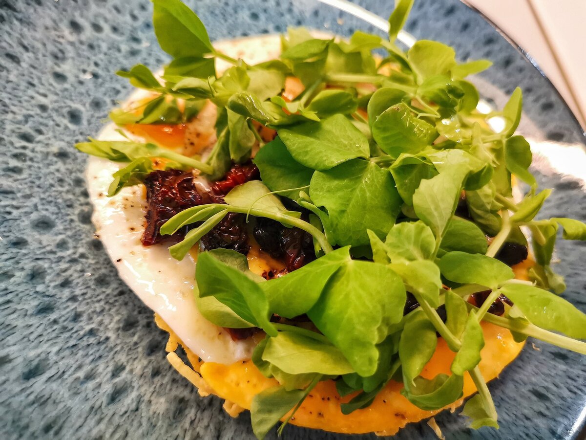 8. Сверху расположить приготовленную яичницу.
