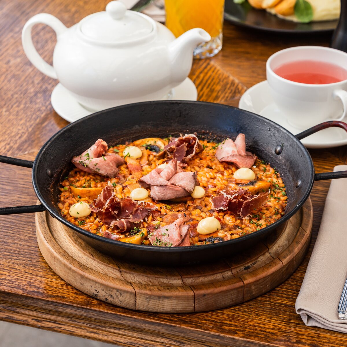 Паэлья с хамоном и говядиной — это действительно эксклюзивное блюдо, достойное быть на столе каждого гурмана. Несмотря на высокую цену на хамон, который используется лишь как изысканная деталь оформления, вкус самой паэльи остаётся восхитительным благодаря гармонии остальных ингредиентов. Рецепт был представлен шеф-поваром ресторана Barceloneta, Алексеем Павловым.
