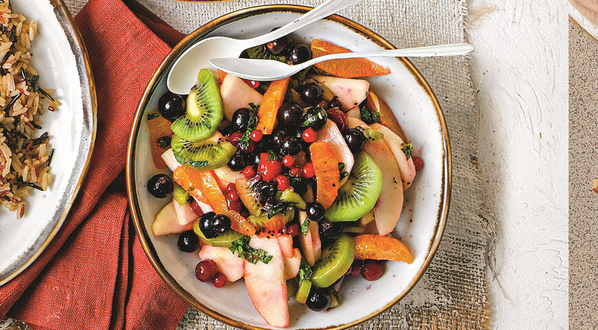 - Нежный фруктовый салат обеспечит заряд витаминов и освежит в жаркие дни.