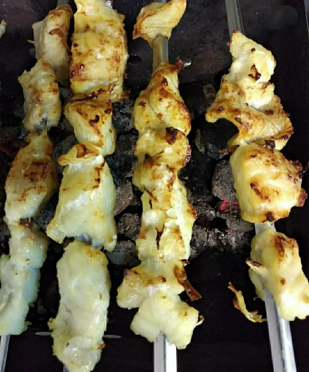 При насадке на шампур толстые куски прокалываются по диагонали, а тонкие обвиваются вокруг шампура, что поможет предотвратить их падение во время приготовления. Для лучшего удержания можно использовать репчатый лук, болгарский перец или целые помидоры между кусками рыбы.