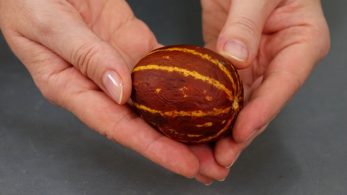 Судя по запаху и визуальным характеристикам, этот фрукт можно было бы принять за дыню. Но при весе всего 77 грамм его крошечные размеры смущают. Тем не менее, аромат действительно насыщенный, сладкий и очень привлекательный, что вызывает желание разрезать дыню.