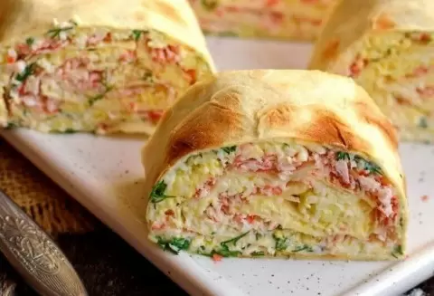 Этот рулет из лаваша – это просто, вкусно и сытно! Ваши гости будут в восторге!