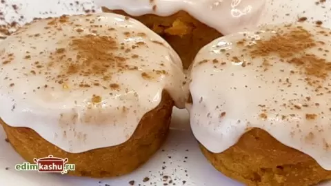 Чтобы приготовить глазурь, нужно в миске тщательно смешать сахарную пудру с кукурузным крахмалом. Затем следует влить горячую воду и растительное масло, и снова все перемешать до однородной массы. Наносить глазурь на выпечку желательно сразу после приготовления, пока она тепленькая.