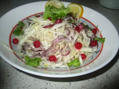 Сегодня предлагается рецепт салата с красной смородиной и красным луком, который придаст блюду пикантную нотку сладости и кислотности. Красный лук перед использованием замаринован в сахаре и лимонном соке, что делает его нежным и сладким. Ягоды смородины добавят интересную кислинку, благодаря которой салат станет особенно освежающим.
