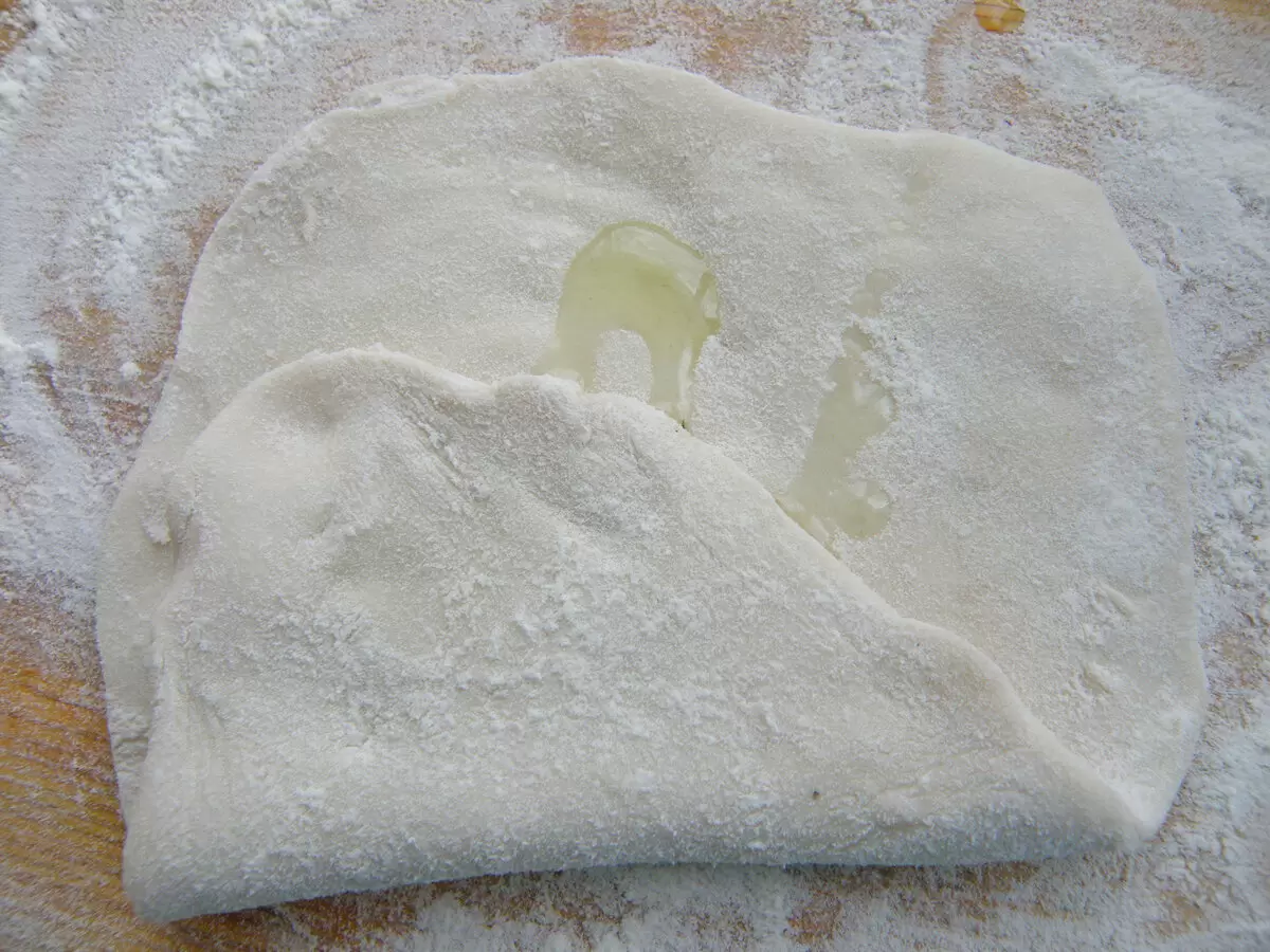 1. Если готового теста нет, сначала нужно замесить все ингредиенты для теста, раскатать в круглую лепешку и смазать томатной пастой.