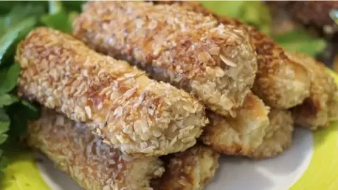 Каждый рулетик опустите в яичную смесь, затем обваляйте в овсяных хлопьях. На сковороде разогрейте немного растительного масла и обжаривайте рулетики до золотистой корочки с обеих сторон. Они прекрасно сохраняют свои качества как горячими, так и холодными, предоставляя возможность наслаждаться вкусной закуской в любое время!