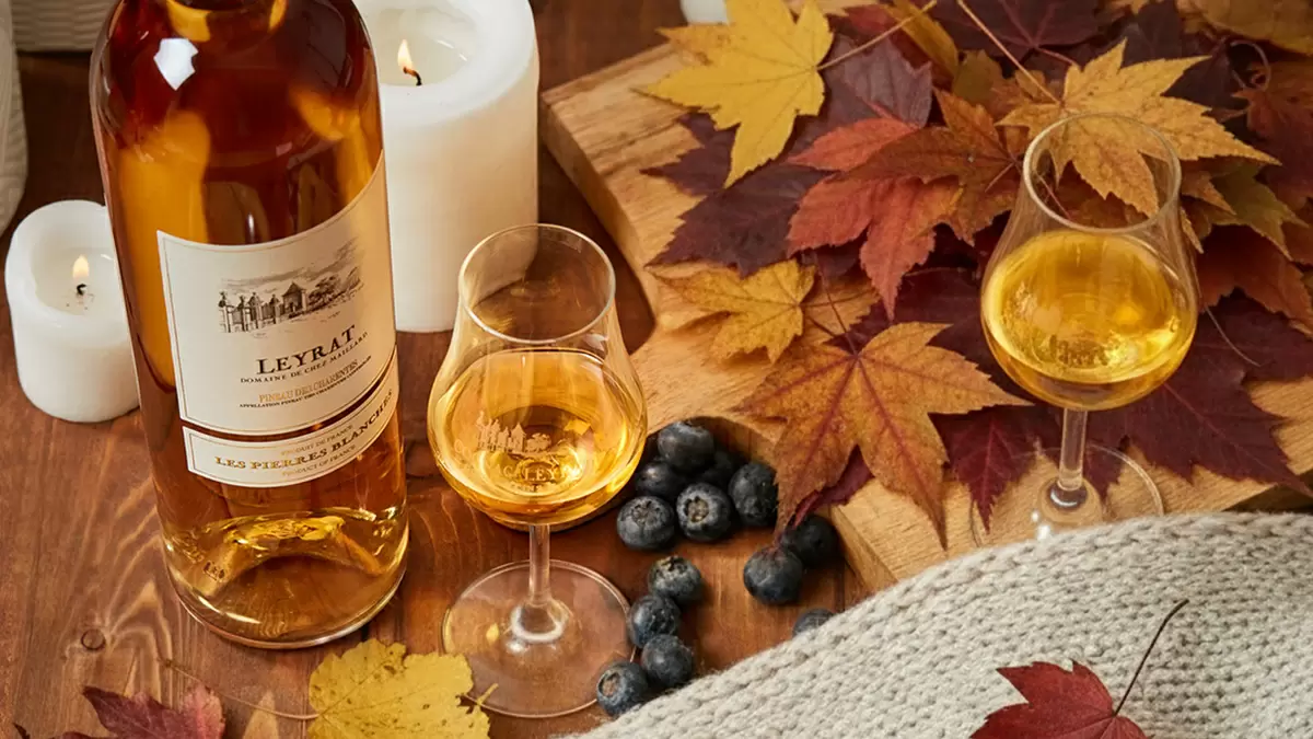 Пино де шарант от Leyrat, в основе которого сочетаются молодые коньячные спирты и сок сорта уни блан, отличается выразительным и сбалансированным вкусом, который отлично подходит для осенних вечеров.