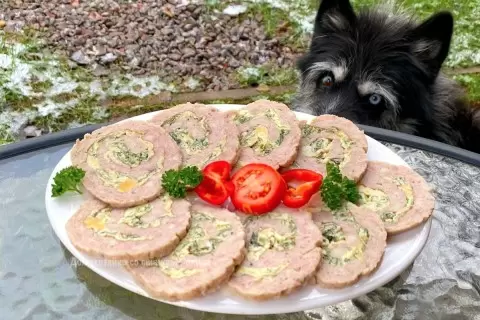 Такой рулет станет изюминкой любого застолья и подарит всем отличное настроение. Приятного аппетита!