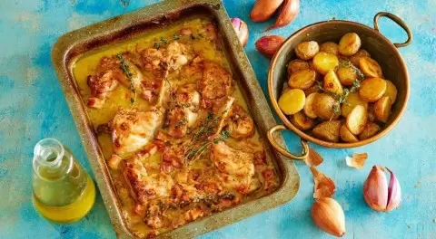 Эта кулинарная находка станет настоящим шедевром на вашем столе – кролик в обрамлении копченой грудинки и ароматного горчичного соуса. Чтобы дополнить блюдо, идеально подойдёт запеченный в оливковом масле картофель, который станет ярким акцентом в этом гастрономическом фаворите.