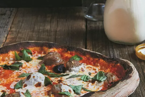 4. Выпекание пиццы: За час-полтора до выпечки достать тесто из холодильника. Разогреть духовку до 290 градусов. Нарезать сосиски и запечь их в горячей духовке. Подготовить рабочую поверхность, присыпанную мукой, и сформировать из теста круг, покрыв его соусом и выкладывая сосиски с моцареллой. Выпекать пиццу на высоком огне около 5 минут, пока корочка не станет золотистой.
