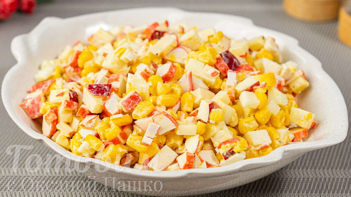 Салат с крабовыми палочками и яблоком — это знакомое многим блюдо, которое приобретает новый оттенок благодаря неожиданным ингредиентам. Сочетание солоноватых крабовых палочек, сладкой кукурузы и остроты маринованного лука создает восхитительный вкус. Однако главная изюминка этого салата — это кисло-сладкое яблоко, которое привносит свежесть и яркость. Такой салат идеально подойдет как для повседневного стола, так и для праздничного застолья.